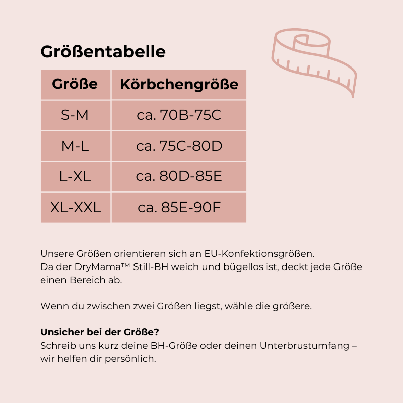 Unsere Größen decken bewusst Größenbereiche ab, da sich der Körper in der Stillzeit verändert.